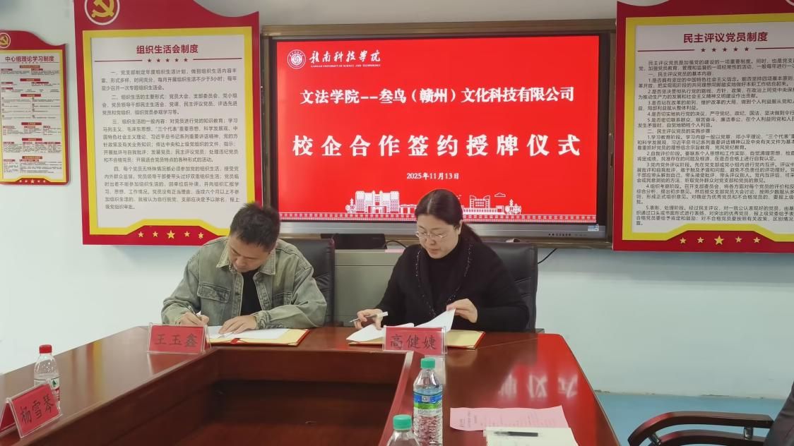 本网讯:为响应国家文化旅游融合发展与产教融合战略,深化产学研协同育人,11月13日,pg娱乐电子游戏官网入口与叁鸟(赣州)文化科技有限公司正式签订校企合作协议。本次合作由章贡区文广旅局全程牵头对接,统筹政企校三方资源促成落地,为赣州“文旅+教育+产业”协同发展搭建新平台。