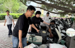 上午10点,志愿者们分组前往教学楼主楼、明德楼、宿舍楼等电动车集中停放区域开展服务。活动中,教师们将占道、倾斜的电动车逐一挪移至指定停车线内,确保车辆整齐排列、留出安全通道。经过一个半小时的整理,原本杂乱的停车区变得井然有序,充分展现党员的良好形象。