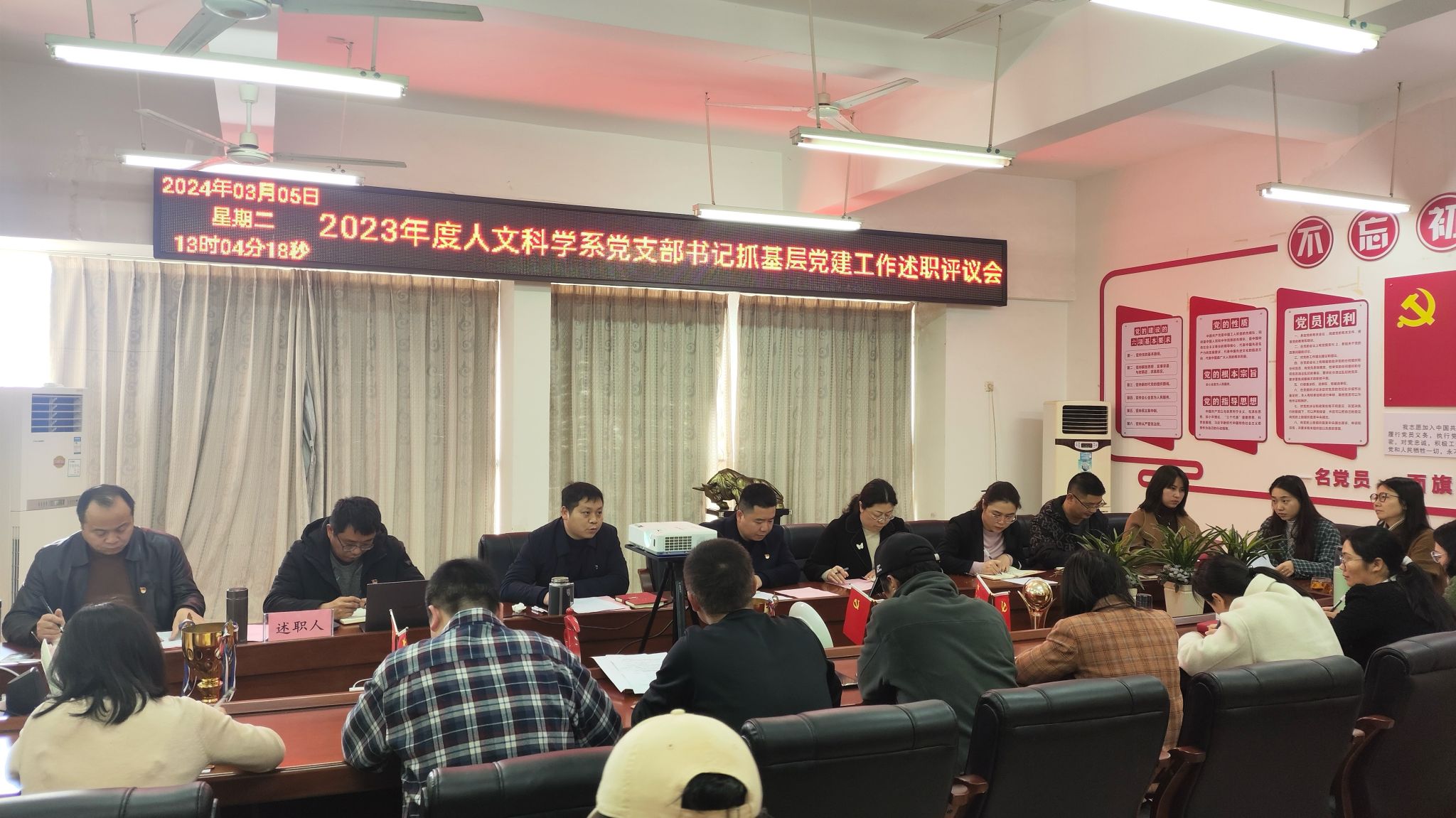 本网讯:3月5日下午,pg娱乐电子游戏官网入口召开2023年度党支部书记抓党建工作述职评议会议。招生就业处副处长、人民武装部副部长杨智勇到会点评指导。会议由人文科学系党总支书记李国鹏主持。人文科学系党总支成员、各党支部书记、部分党员和群众代表参加会议。