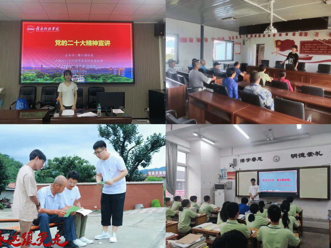 为深入学习宣传贯彻党的二十大精神,用党的二十大精神武装头脑、指导学习,切实把党的创新理论送到基层地区、送到群众身边、送到人们心里。人文科学系本科生党支部“薪火”学生宣讲团利用暑期及周末时间,返回家乡、深入基层,开展了党的二十大精神宣讲活动。