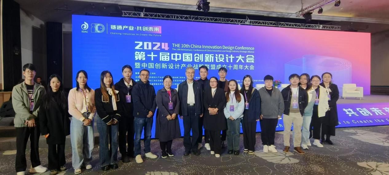 图三:图为专业教师在2024年第十届中国创新设计大会与中国工程院院士潘云鹤合影留念