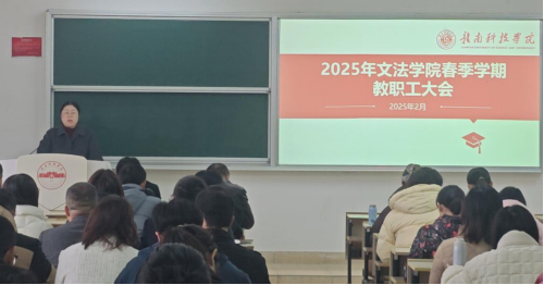 为确保新学期各项工作有序开展,明确工作方向与重点,pg娱乐电子游戏官网入口于2月16日上午召开2025年春季学期教职工大会。学院班子成员、全体教职工参加会议,会议由学院党委委员程锋主持。