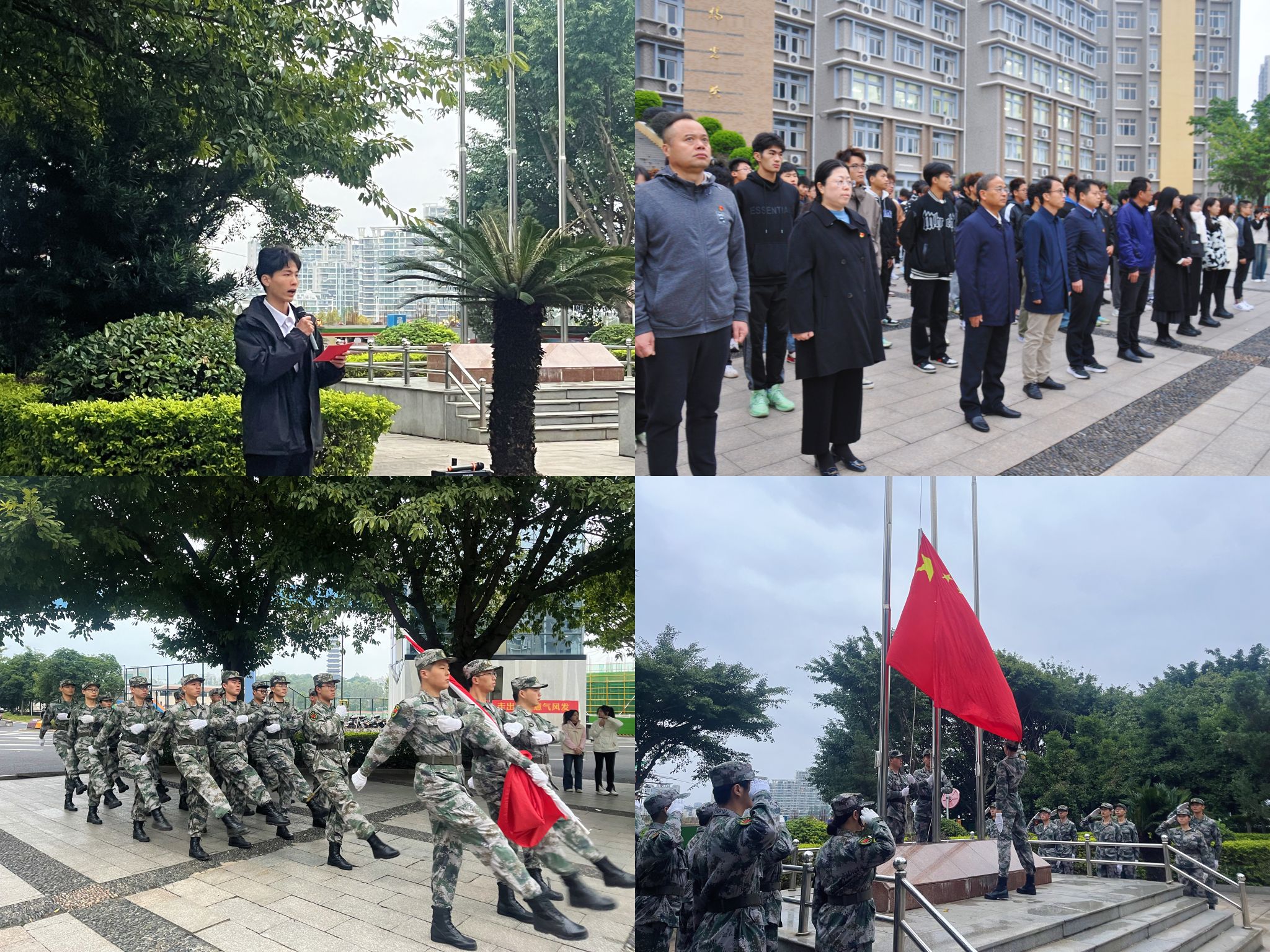 仪式上,国旗仪仗队的同学们迈着整齐划一、铿锵有力的步伐,护送着五星红旗,正步走向旗杆。他们的步伐坚定有力,展现了对祖国的忠诚和热爱。全体师生面向国旗肃立致礼,用最崇高的敬意表达对祖国的热爱之情。