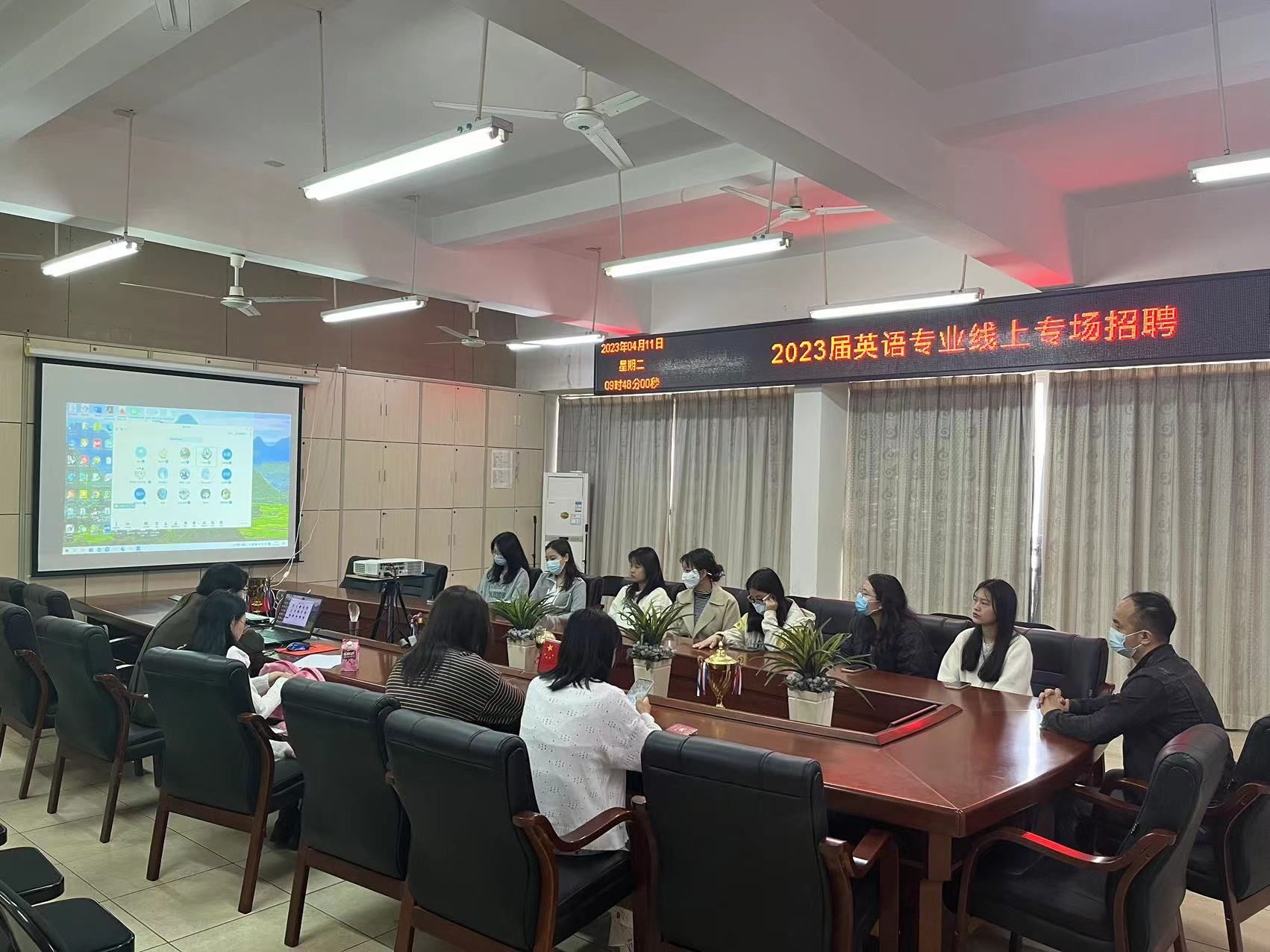 本网讯:为提高葡语和英语专业学生的就业质量和就业率,推进校企良性互动,4月11日,人文科学系特邀浙江宁波凯越集团、广州茶里集团有限公司、黄金屋科技有限公司在崇善楼Z1D1阶梯教室举办葡语及英语专业专场招聘会。同时,人文系邀请厦门市纳丝达无纺布有限公司、深圳市清振拓电子科技有限公司举办英语专业线上招聘会。线下招聘会由葡语教研室主任肖红英主持,线上招聘会由外语教研室主任顾玲主持。