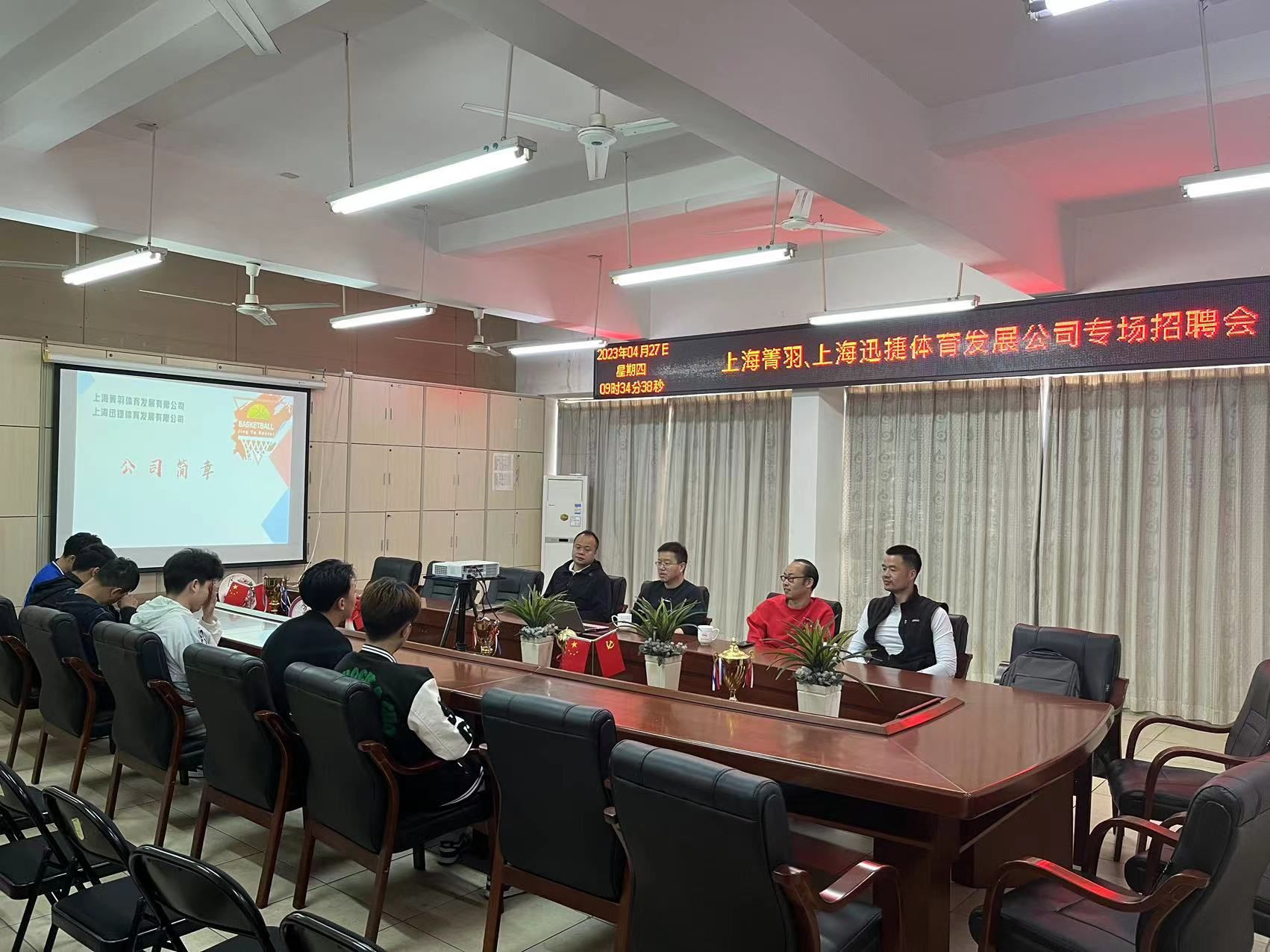 会上,王军堂对上海箐羽、上海迅捷体育发展有限公司负责人朱惠忠一行来校招聘表示热烈欢迎,对人文系社会体育指导专业的基本情况进行了详实介绍。