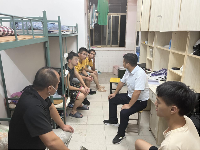 李国鹏勉励同学们要珍惜大学时光,设计好职业生涯规划,学好专业知识,掌握过硬技能,积极参加各项活动,提升综合素质,叮嘱同学们提高安全意识,注意防范网络、电信诈骗等,并对宿舍内务整理提出建议。王军堂鼓励新生加强宿舍同学之间的沟通交流,互帮互助,尽快适应大学生活,有困难及时向班主任或者辅导员老师反映,共同克服,并希望大家度过一段快乐且有意义的大学生活。