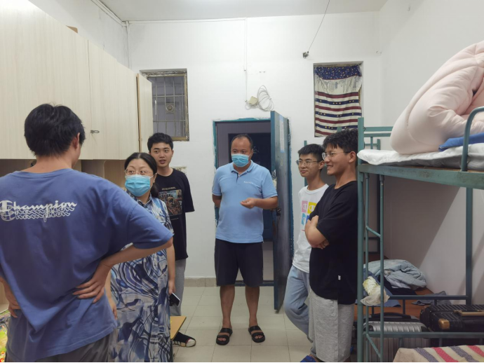本网讯:9月1日—2日,2022级新同学陆续入校报到,为使新同学更快、更好地适应新环境,人文科学系主任高健婕、党总支书记李国鹏、副主任何建军、学生工作负责人王军堂、全体辅导员及班主任一行分别走访、关心2022级新同学。