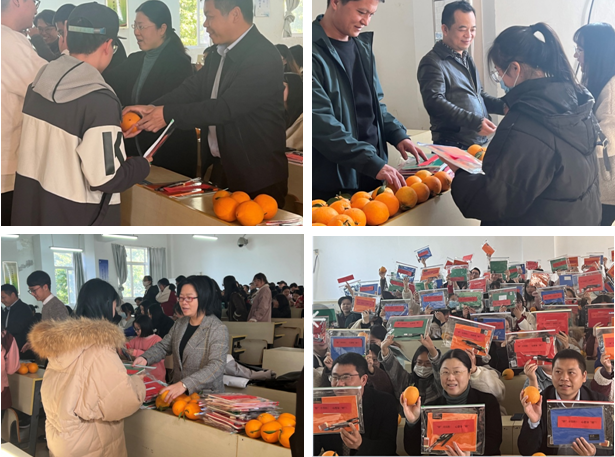 最后,全体参会领导、老师为考研学子们送上了新鲜的赣南脐橙和精心准备的考研文具包,祝同学们考研“脐”开得胜、心想事“橙”!此次考研考前动员大会的召开,不仅让考研学子感受到了系部的人文关怀,也极大地增强了考研学子的信心,人文科学系也将与考研学子“研”途相伴,共创佳绩。