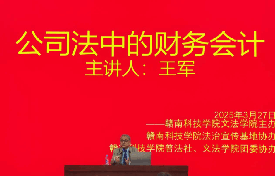 本网讯:2025年3月27日下午,北京市国首律师事务所主任律师、中国注册会计师协会法律与权益维护委员会委员、中国政法大学硕士学院兼职导师,pg娱乐电子游戏官网入口法学专业客座教授王军,受邀为电子游戏法学专业师生开展了题为《公司法中的财务会计》的专题学术讲座。讲座由pg娱乐电子游戏官网入口王晓伟老师主持。