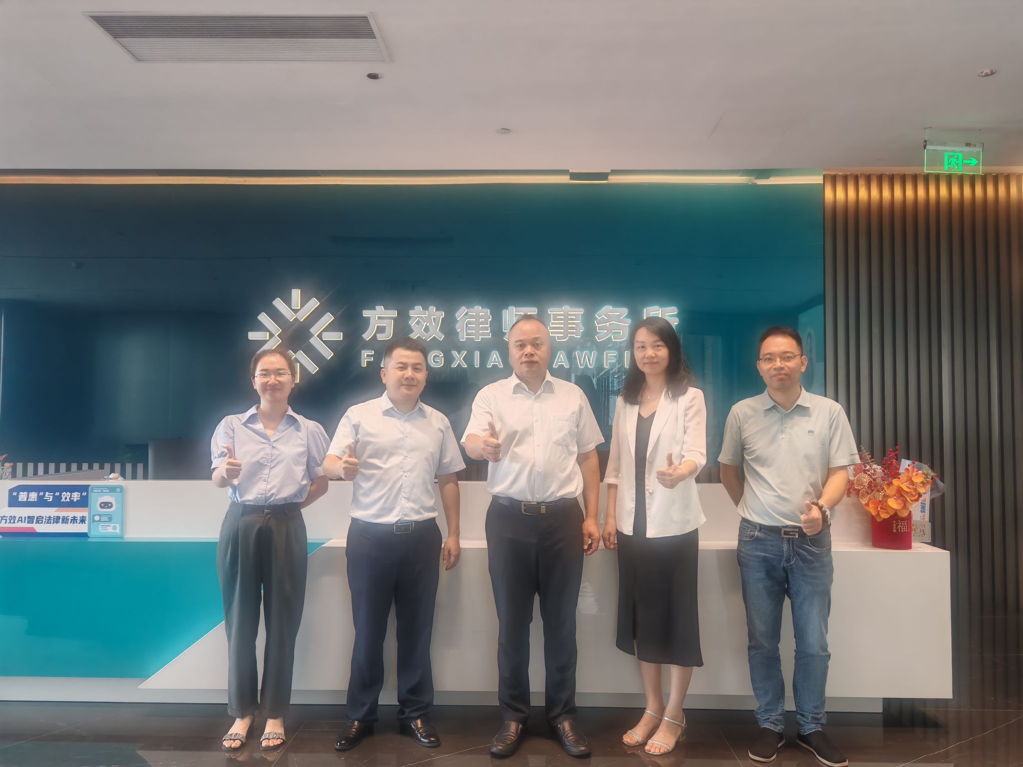 广东方效律师事务所创始人陈俊,法学08级校友,对母校老师的到访表示诚挚欢迎。陈俊详细介绍了该律所的发展历程、核心业务领域以及在行业内的竞争优势等情况。王军堂向其介绍了学院法学专业的人才培养模式和毕业生的综合素养,双方就学生实习、就业合作等方面展开了交流,深入探讨该所在7月9日发布的法律咨询小程序,期望能实现法律实务新领域的共同探索与合作,实现资源共享、互利共赢。