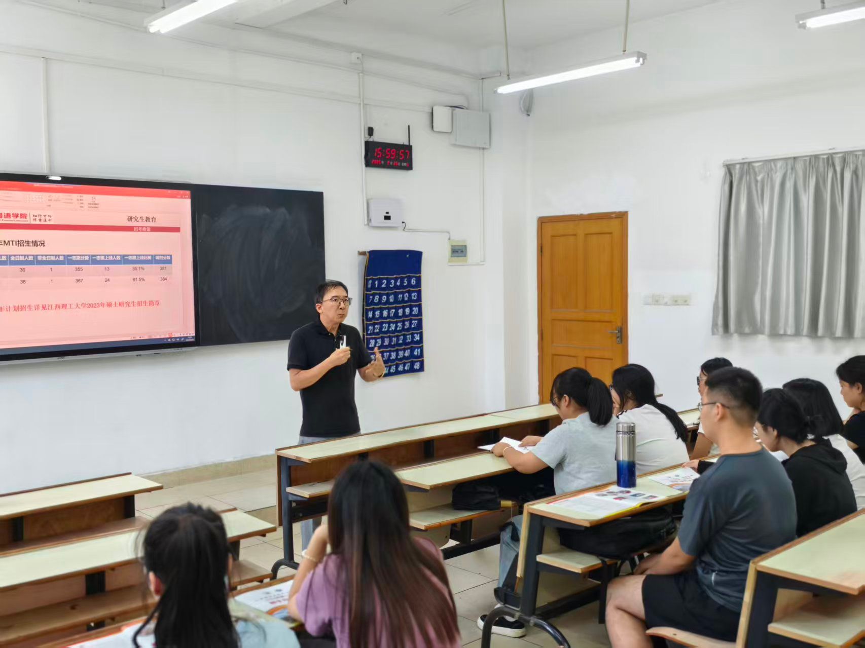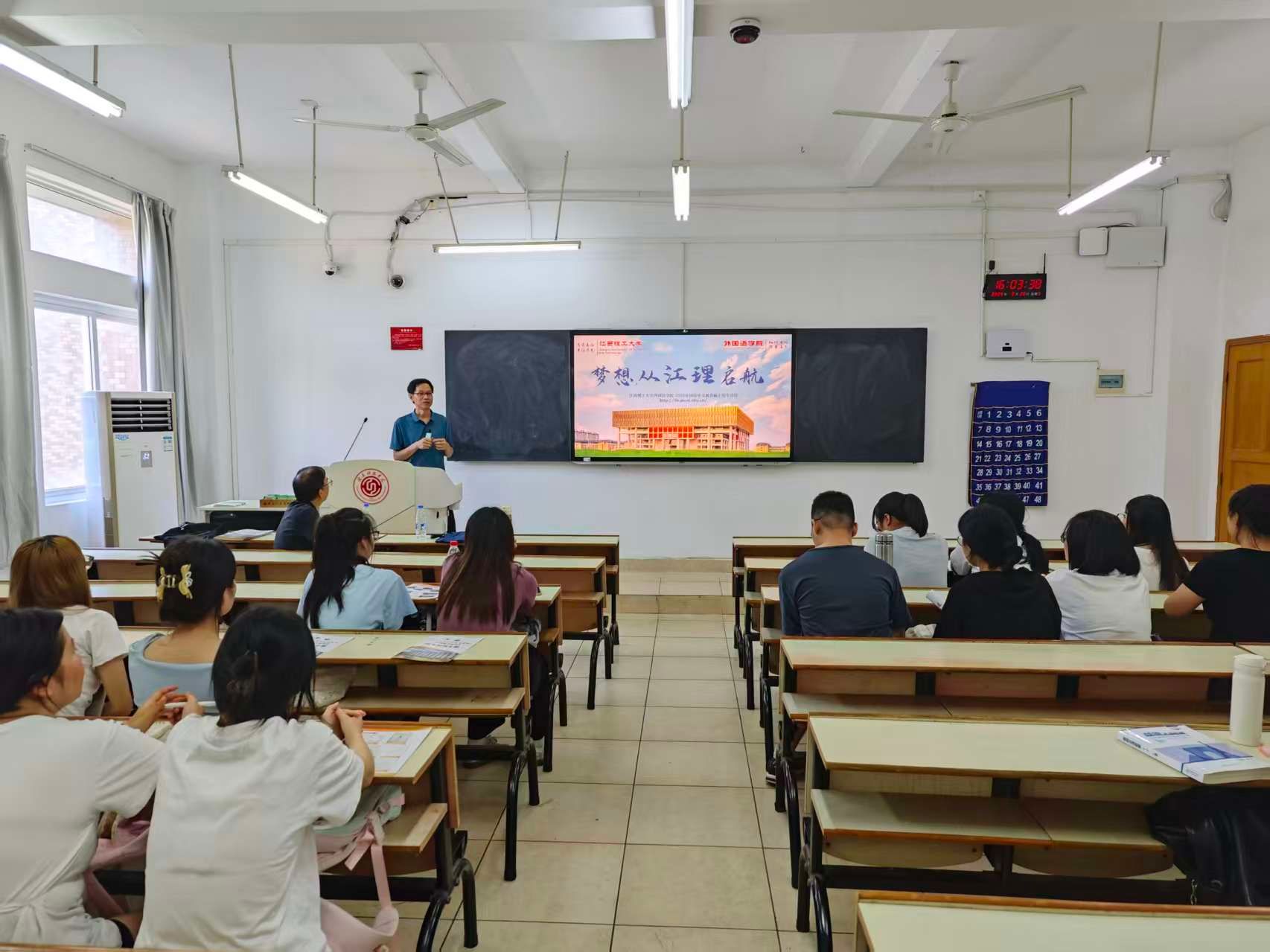 本网讯:2025年全国硕士研究生报名在即,9月26日下午,pg娱乐电子游戏官网入口英语教研室邀请江西理工大学外国语学院翻译硕士专业学位(MTI)硕士点负责人张建平教授、汉语国际教育专业硕士点翻译硕士学位点负责人钟舟海副教授、2026级研究生班主任蔡强副教授,给学院英语专业22级和23级学生开展考研指导讲座。