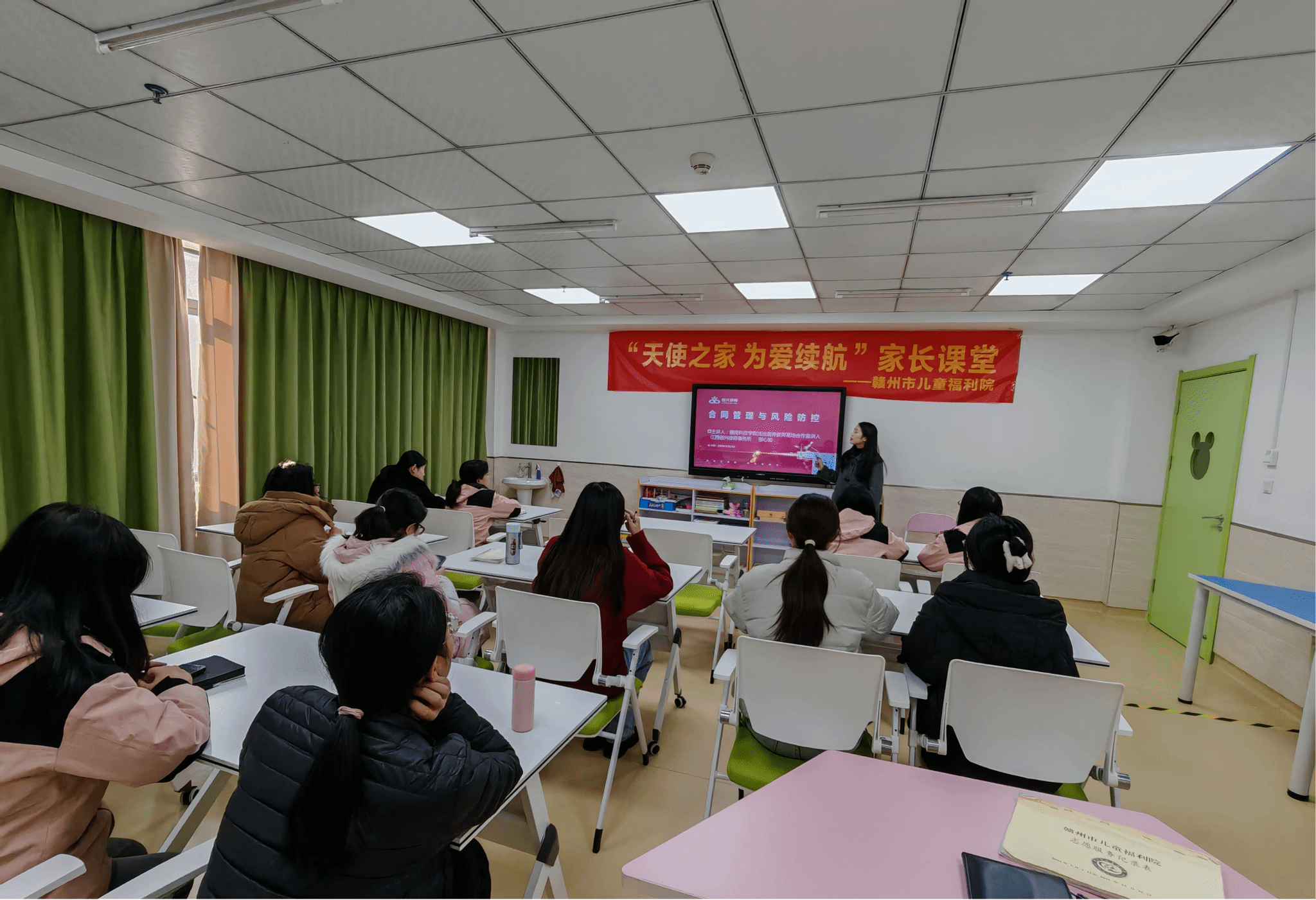 12月19日,学校法治宣传教育基地应赣州市儿童福利院的邀请开展以“合同管理与风险防控”为主题的公益宣讲活动,赣州市儿童福利院各部门负责人、人事专员、后勤专员全程参与,学校法治宣传教育基地特邀校企合作企业——江西创兴律师事务所青年律师邹心如开讲。