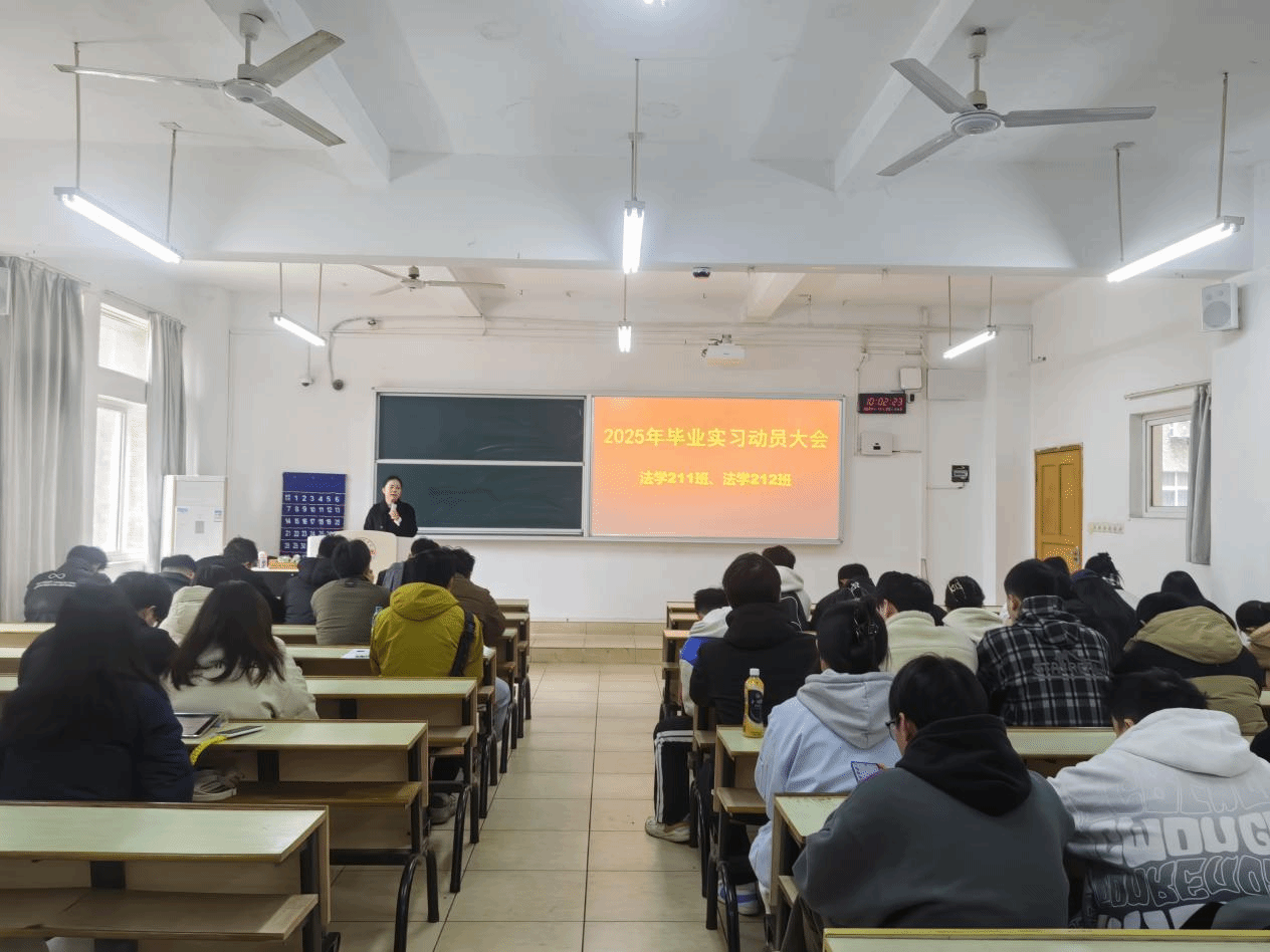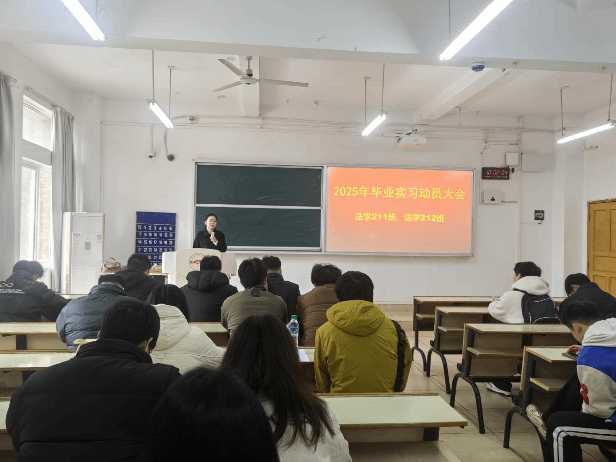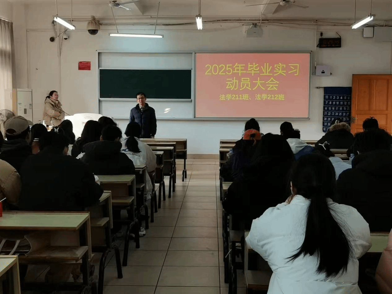 为提高法学专业学生毕业实习意识,提升法学专业就业质量,12月25日,pg娱乐电子游戏官网入口法学教研室在教学主楼Z117教室召开了2025届毕业生实习动员大会。法学教研室主任王晓伟、班主任欧阳东及法学2025届全体毕业生参加动员大会。