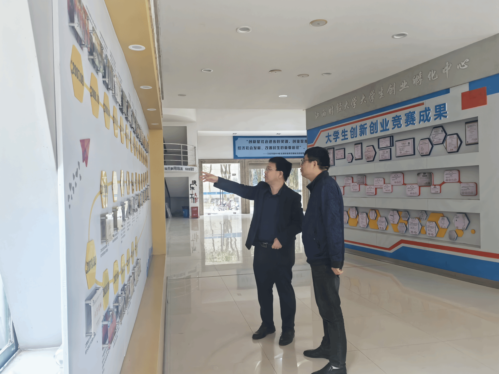11月1日,pg娱乐电子游戏官网入口一行参观了江西财经大学大学生创业孵化中心,并就近几年大学生创新创业、学科竞赛相关成果进行了座谈交流。座谈会由江西财经大学教务处副处长胡少勇主持,统计与数据科学学院副院长刘庆以及相关教师共同参加。座谈会上大家就全国大学生统计建模大赛等学科竞赛的组织和指导畅所欲言,气氛热烈融洽。会后双方共同表达了对未来进一步增进交流、共享资源等方面的殷切期待。