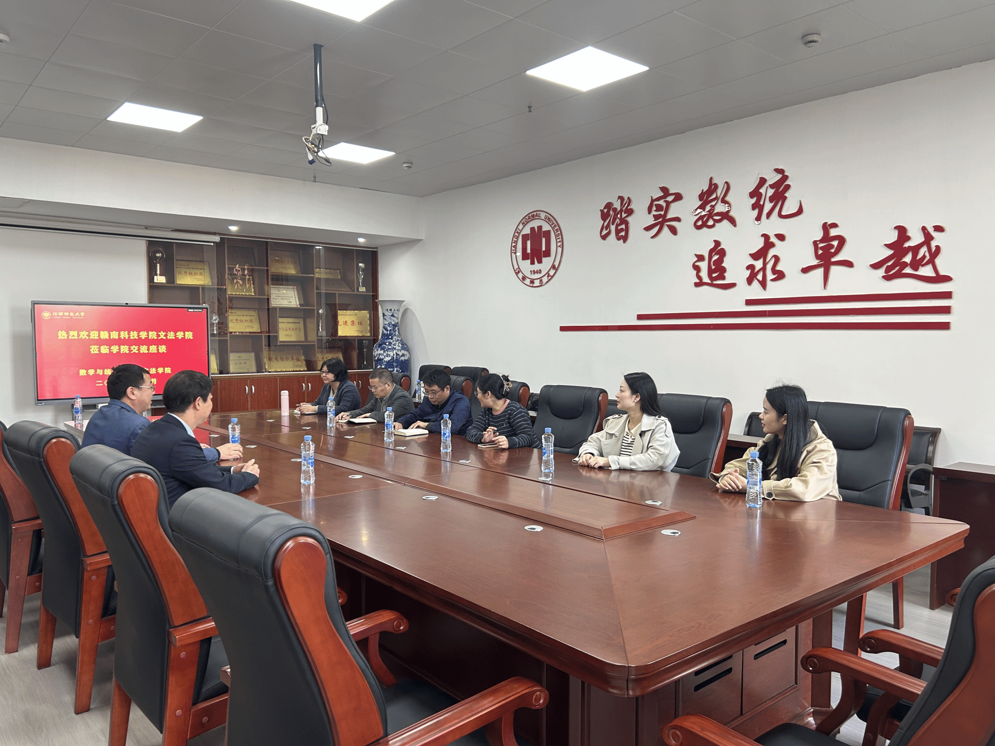 11月2日,pg娱乐电子游戏官网入口一行参观了江西师范大学数学与统计学院,并就近几年大学生学科竞赛、教师团队建设相关成果进行了深入交流。座谈会由江西师范大学硕士生导师,首届江西省“金牌教师”桂国祥副教授主持,高数相关科室负责人共同参加。座谈会上,桂国祥重点介绍了学校大学生数学教育总体情况,分享了学校在学位点培育、学生培养与管理、教师队伍建设相关方面取得的成效和经验。何建军介绍了电子游戏学生及教师队伍教育发展历程、现状、取得的成果等基本情况。双方就学生管理体系建设、教学创新改革项目、学科竞赛项目、教师队伍建设等内容进行了深入交流,并对未来的合作进行了展望。