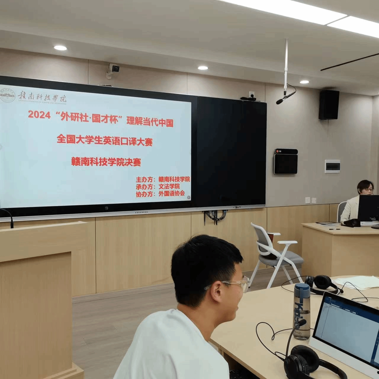 担任本次大赛评委的是顾玲老师和郭磊磊老师,他们以其专业的素养和严谨的态度,对参赛选手的表现进行了公正评判。共有十八名来自不同年级和专业的选手报名参赛,他们在比赛中展示了扎实的语言功底和出色的口译能力。
