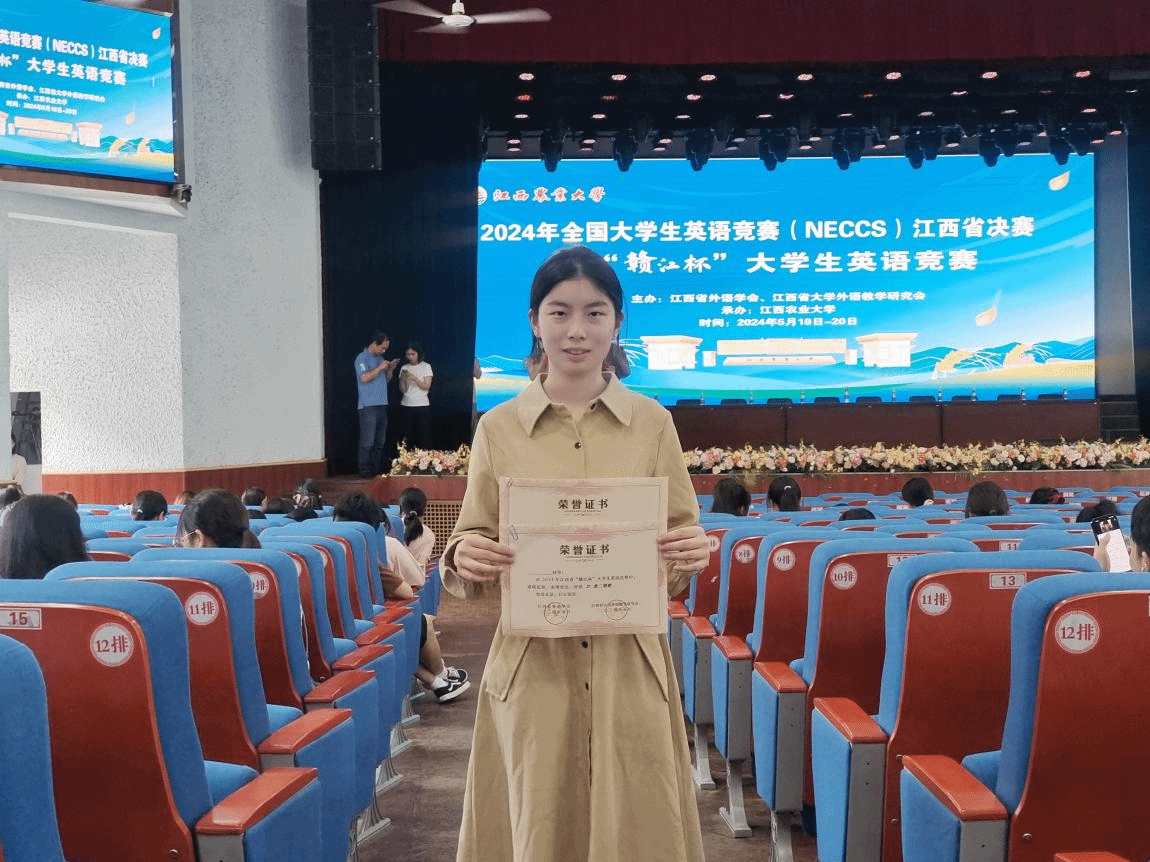 5月18日至20日,2024年全国大学生英语竞赛江西省决赛暨“赣江杯”大学生英语竞赛在江西农业大学举行,来自南昌大学、江西师范大学等全省47所高校的844名学生参加了此次比赛。经过综合考试、听力单项考试、口语演讲比赛三个环节的激烈比拼,电子游戏环艺201班李玉锦同学发挥出色,一举斩获“赣江杯”大学生英语竞赛综合二等奖1项,口语二等奖1项。