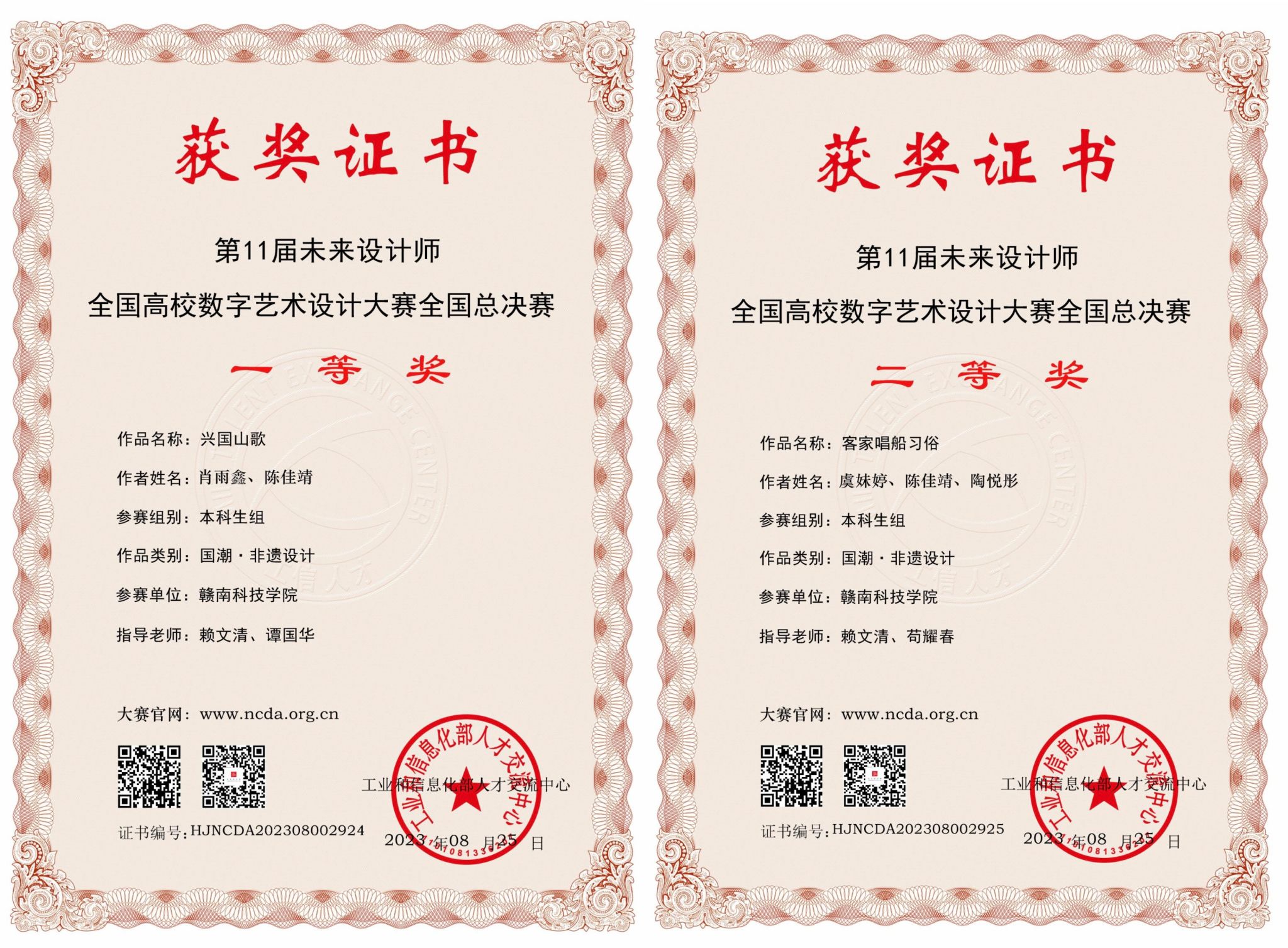 第十一届未来设计师教育论坛暨·全国高校数字艺术设计大赛(NCDA)于近日结束。人文科学系数字媒体艺术专业师生成绩斐然,选送的师生作品获得全国总决赛一等奖1项、二等奖1项、三等奖1项、省级奖项34项。赖文清、谭国华两位老师荣获国赛优秀指导教师。人文科学系作为全国总决赛一等奖获奖单位,受邀参加大赛的颁奖典礼。