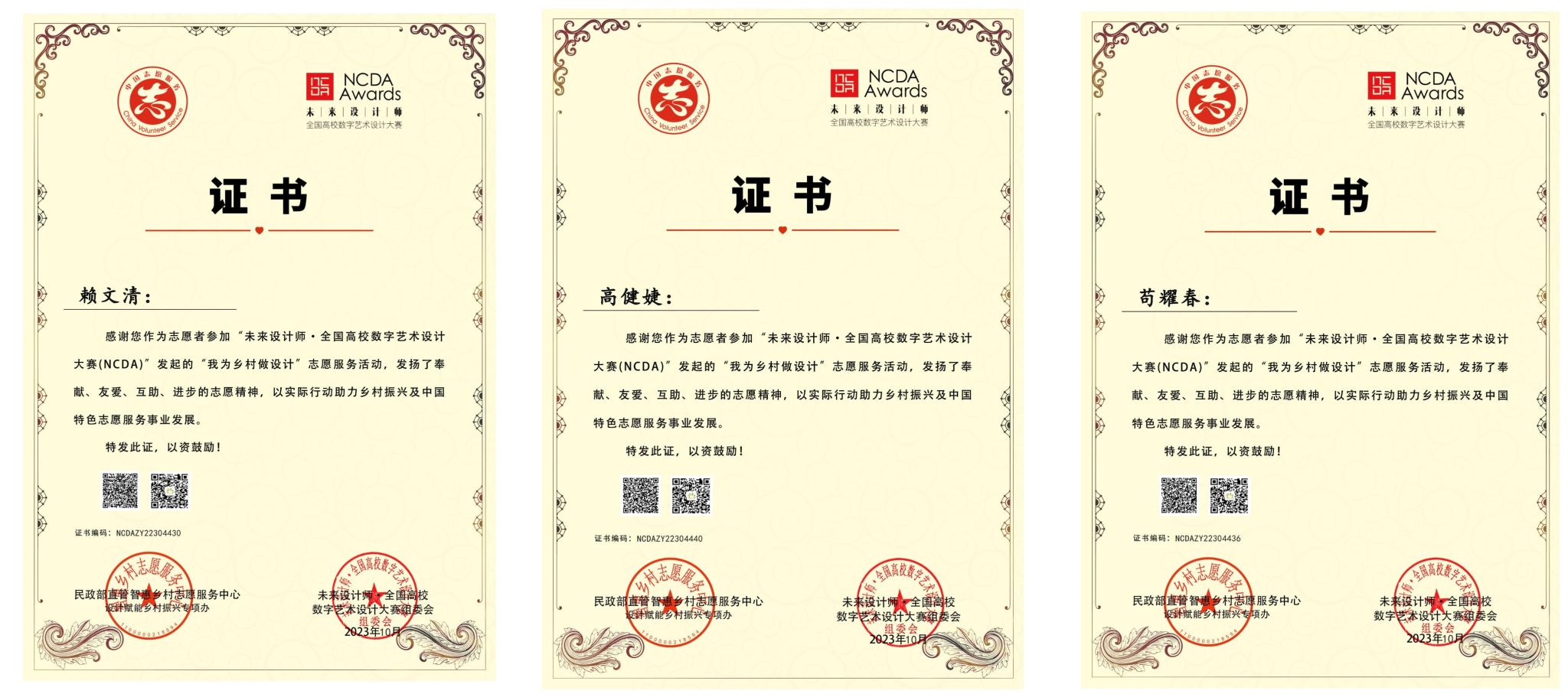 另外,电子游戏师生作为志愿者参加了“未来设计师·全国高校数字艺术设计大赛(NCDA)”发起的“我为乡村做设计”志愿服务活动,发扬了奉献、友爱、互助、进步的志愿精神,以实际行动助力乡村振兴及中国特色志愿服务事业发展。电子游戏被全国高校设计赋能乡村振兴专项办公室授予“委员单位”牌,为建设美丽乡村、推动乡村振兴发挥积极的作用,贡献设计的力量。