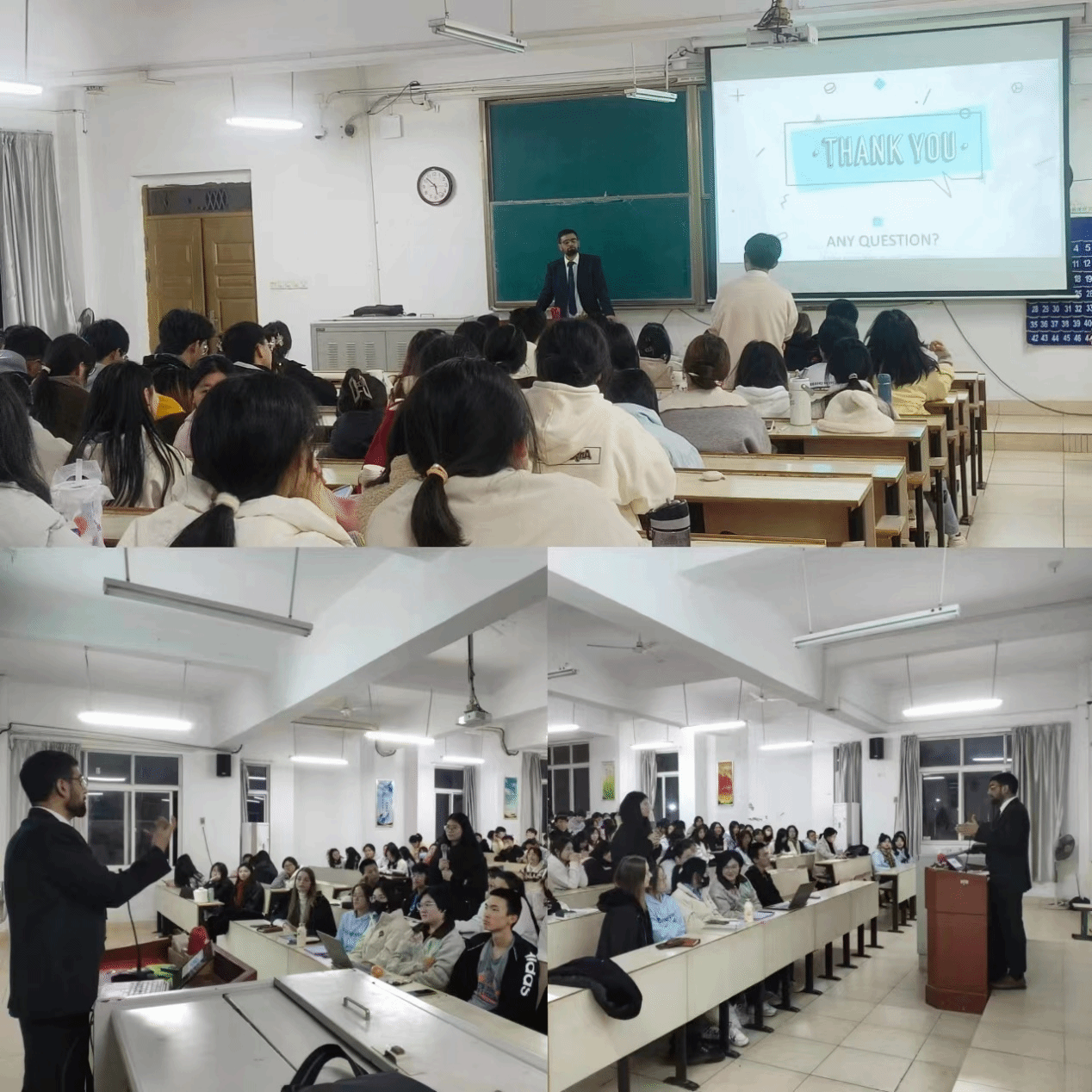 为进一步帮助电子游戏学生探索更具交互性、个性化的学习模式,促进其对各类语言文化的理解与认识,以引领电子游戏学生更好地走向更加开放、多元化的语言学习时代,人文科学系于2023年12月12日16:30在教学主楼Z1D3教室举办了一场主题为“技术辅助语言学习”的学术交流讲座。此次讲座邀请到了巴基斯坦籍人士哈蒙德教授作为主讲嘉宾。哈蒙德先生不仅拥有伊斯兰堡国立现代语言大学(NUML)英语文学博士学位,还在攻读博士学位期间获得巴基斯坦高等教育委员会颁发的奖学金并在伦敦布鲁内尔大学完成了研究工作,并且在各种著名院校教授英语语言文学20余年,曾被国立科技大学授予2020年度最佳教师奖,其研究领域涵盖文学理论、双语教学、英语语言教学法和电影研究,并已发表25篇各种主题的研究论文。讲座气氛如火如荼,学生们的学习热情高涨不已,现场掌声持续不断。