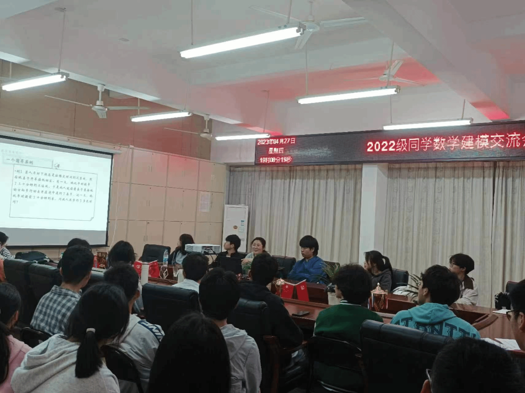 为增强2022级学生对数学建模知识的了解,激发同学们对数学建模的热情,提升学生数学素养,开阔学术视野,2023年4月27日晚上,我系在教学主楼Z807会议室举办了"数学建模入门"专题讲座。讲座由数学教研室兰丽英老师主讲,学校各专业学生代表聆听了讲座。