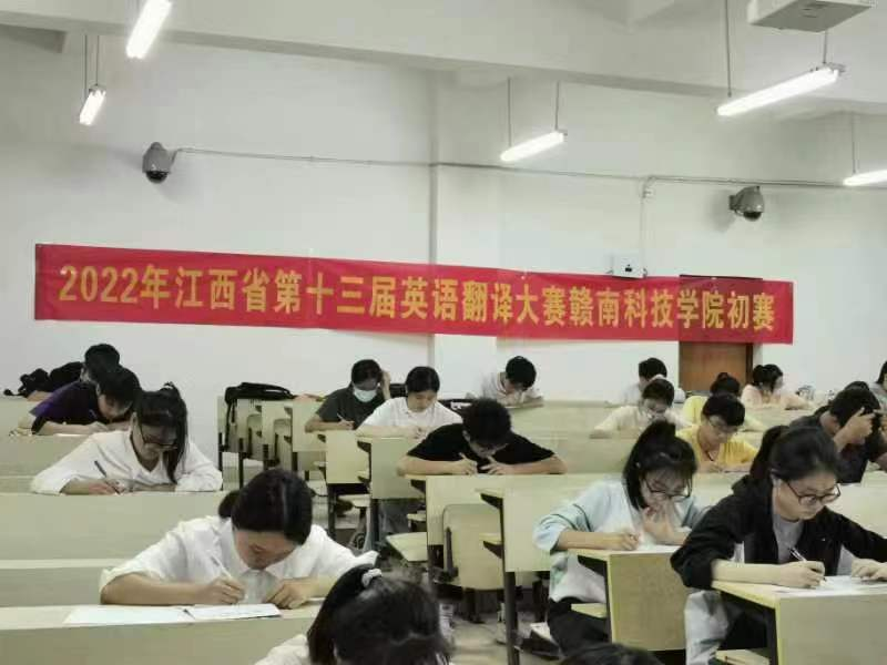 2022年10月25日晚,2022年pg娱乐电子游戏官网入口英语翻译比赛暨2022年江西省第十三届英语翻译大赛选拔赛在主教学楼顺利举行。大赛由公共外语教研室、专业英语教研室共同承担了本次大赛的组织工作,共有400余名学生参赛。
