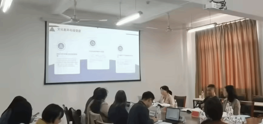 邹艳菁报告的论文题目为《大语言模型辅助学习者英语口语非流利特征分析》,论文研究了将大语言模型这一前沿科技与英语口语学习领域相结合,为分析英语口语非流利特征开辟了新路径,有助于更精确地剖析学习者在口语表达中存在的障碍,为后续的教学干预和学习策略改进提供了更有价值的依据。邱敏报告的论文题目为《实证类学术论文的语类布局研究》,论文通过自建语料库,探索物理学及语言学实证论文的语类布局特征,研究发现两门学科的实证论文在基础语类的总体布局及分阶段布局方面均存在差异,研究结果拓展语类理论的应用范围,为学术写作教学以及教材编写提供指导。谢丽琴报告的论文题目为《乡土文学译介与国际传播研究——以《边城》为例》,论文聚焦乡土文学,乡土文学作为中国文学的重要组成部分,承载着丰富的地域文化和民族情感。在全球化的背景下,乡土文学的译介与国际传播对于弘扬中国文化、促进跨文化理解具有重要意义。万文娟老师的论文“A Study on the Effect of Block Approach on the Improvement of English Majors’ C-E Interpreting Ability”进行了海报展示,论文深入探讨了基于语块的语言教学在提升英语专业学生汉译英口译技能方面的潜力。通过研究语块如何促进翻译和口译过程,旨在评估它们在提高学生在汉译英口译任务中的准确性、流利度和整体表现方面的有效性,这一观点为相关领域的研究开辟了新的视角,引得不少同行驻足观看、讨论。