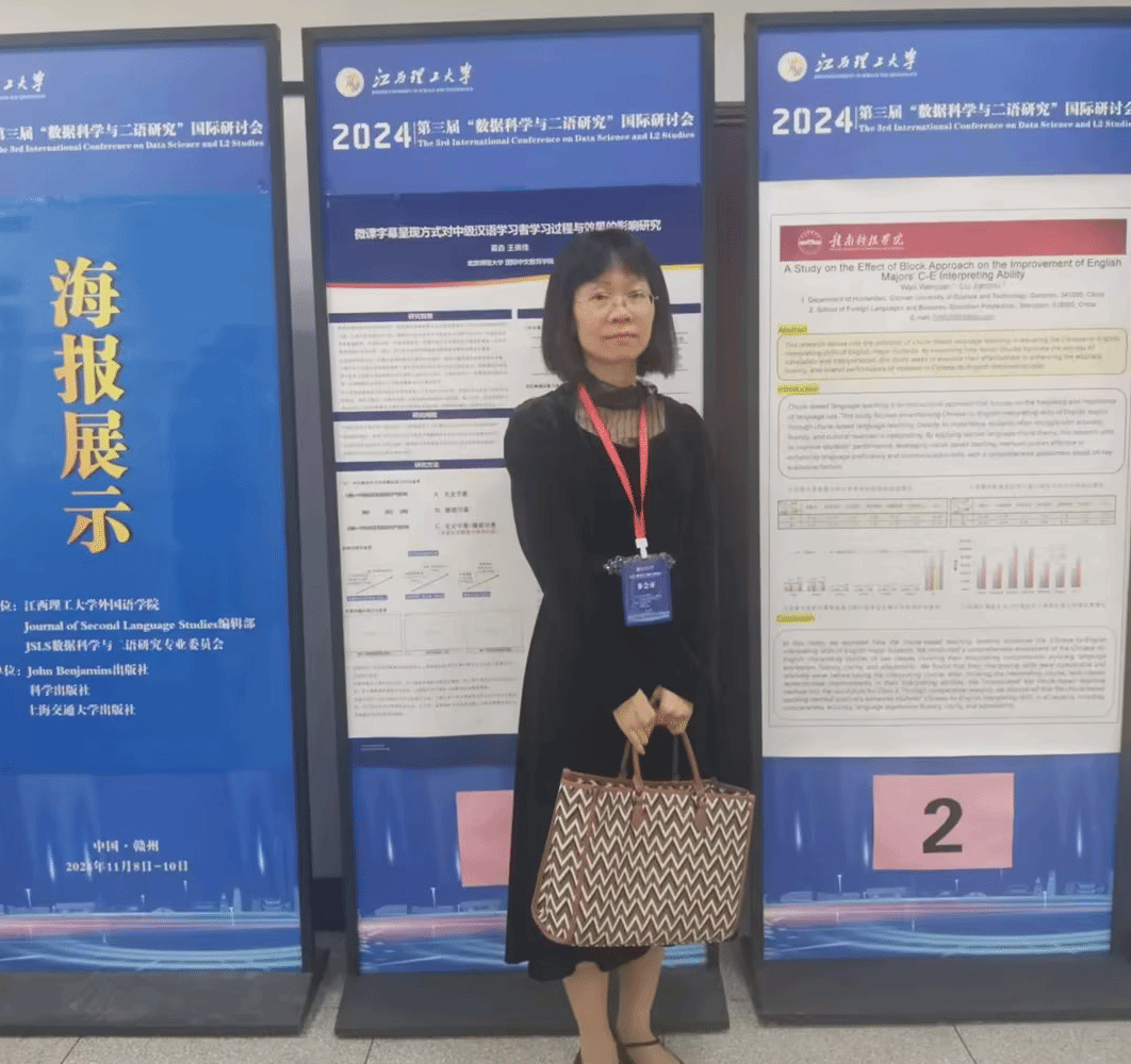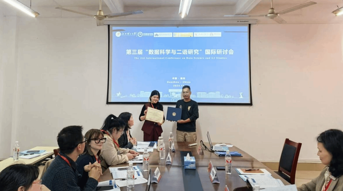 第三届“数据科学与二语研究”国际研讨会于2024年11月8日在江西理工大学成功举办,海内外200多名专家学者齐聚一堂,就“二语研究者的语言数据科学素养”这一主题开展研讨交流。pg娱乐电子游戏官网入口组织12名外语教师参会,其中邹艳菁、邱敏、谢丽琴等三位老师在会上报告了论文,万文娟老师进行了论文海报展示。
