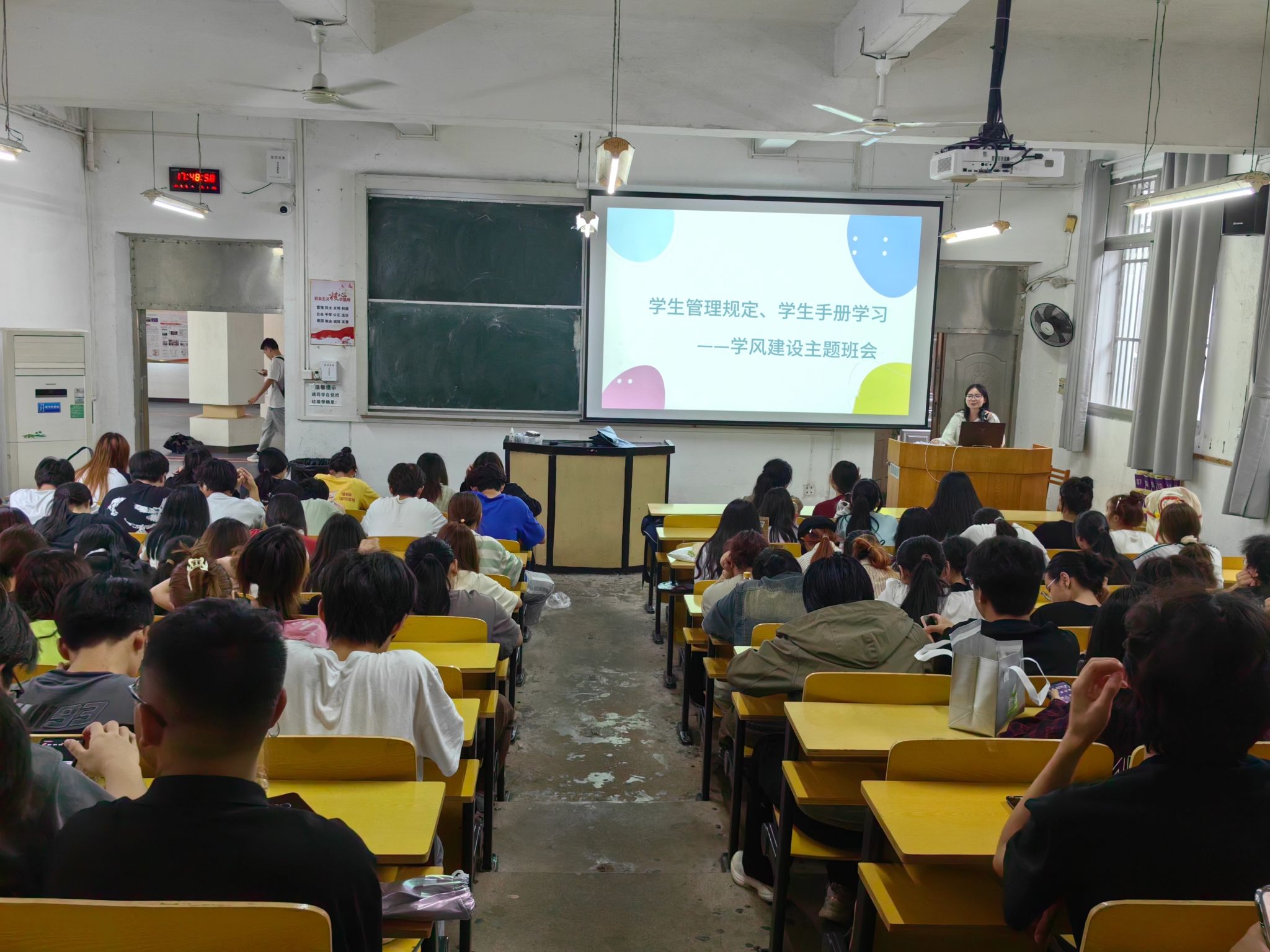 本网讯:4月25日下午,pg娱乐电子游戏官网入口23级新生班级在红旗校区教学楼举办了一场以学风建设及形势与政策为主题的教育活动。此次活动由王奕婷老师主持,旨在提升学生的学术素养和对国家形势政策的深刻理解。