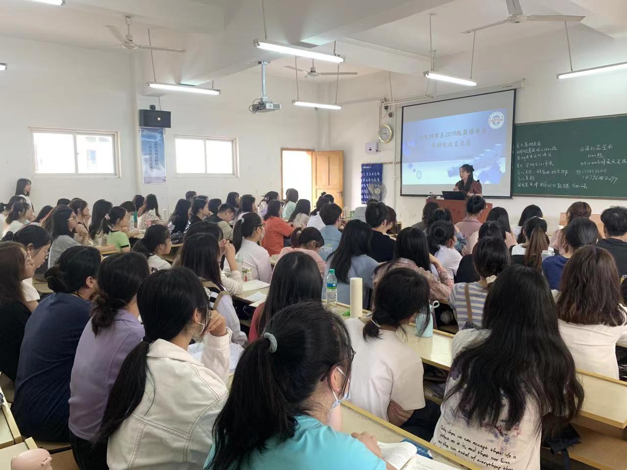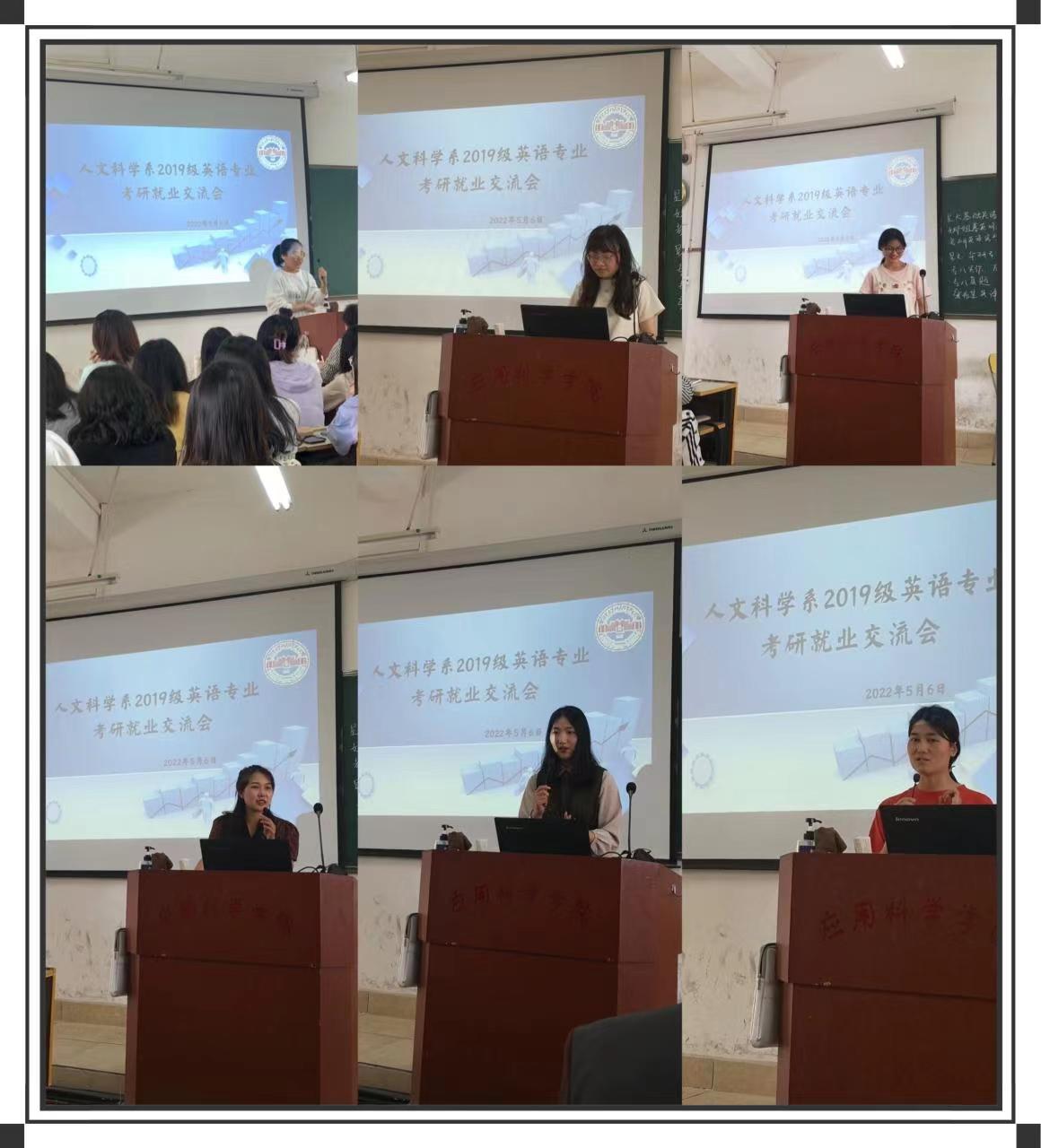 5月6日上午,人文科学系召开2019级考研就业分享交流会,会议邀请了2018级张嘉漪等8名英语专业同学代表为2019级学生分享各自的考研和就业经验,辅导员牛英萍主持本次活动。