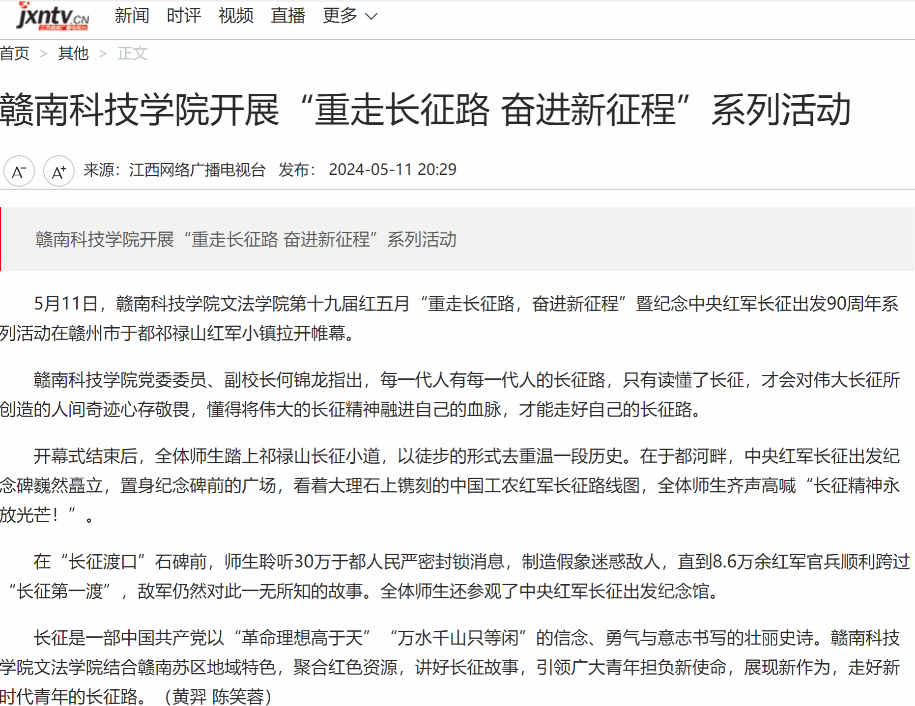 长征是一部中国共产党以“革命理想高于天”“万水千山只等闲”的信念、勇气与意志书写的壮丽史诗。pg娱乐电子游戏官网入口结合赣南苏区地域特色,聚合红色资源,讲好长征故事,引领广大青年担负新使命,展现新作为,走好新时代青年的长征路。