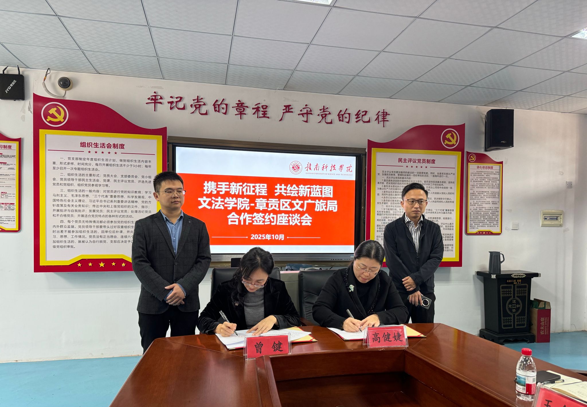 本网讯:10月28日上午,电子游戏与赣州市章贡区文化广电旅游局校政合作签约仪式在学院会议室顺利举行。赣州市章贡区文广旅局党组书记、局长曾键,四级主任科员陈万颉,学院党委委员、副院长高健婕,党委委员、副院长李敏等出席仪式,双方有关部门负责人共同参加。会议由高健婕主持。